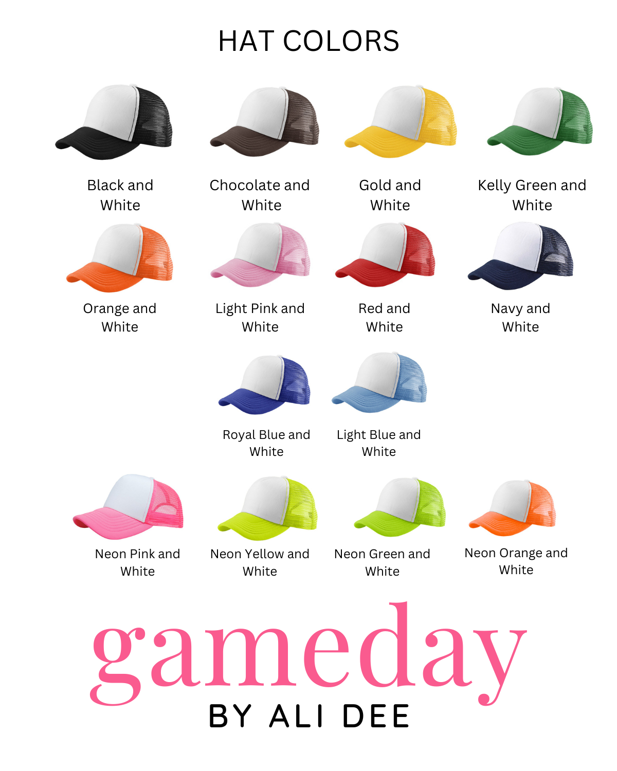 Customize the perfect gameday hat for your favorite team. Pick from a variety of colors for the artwork, and then pick your hat color.