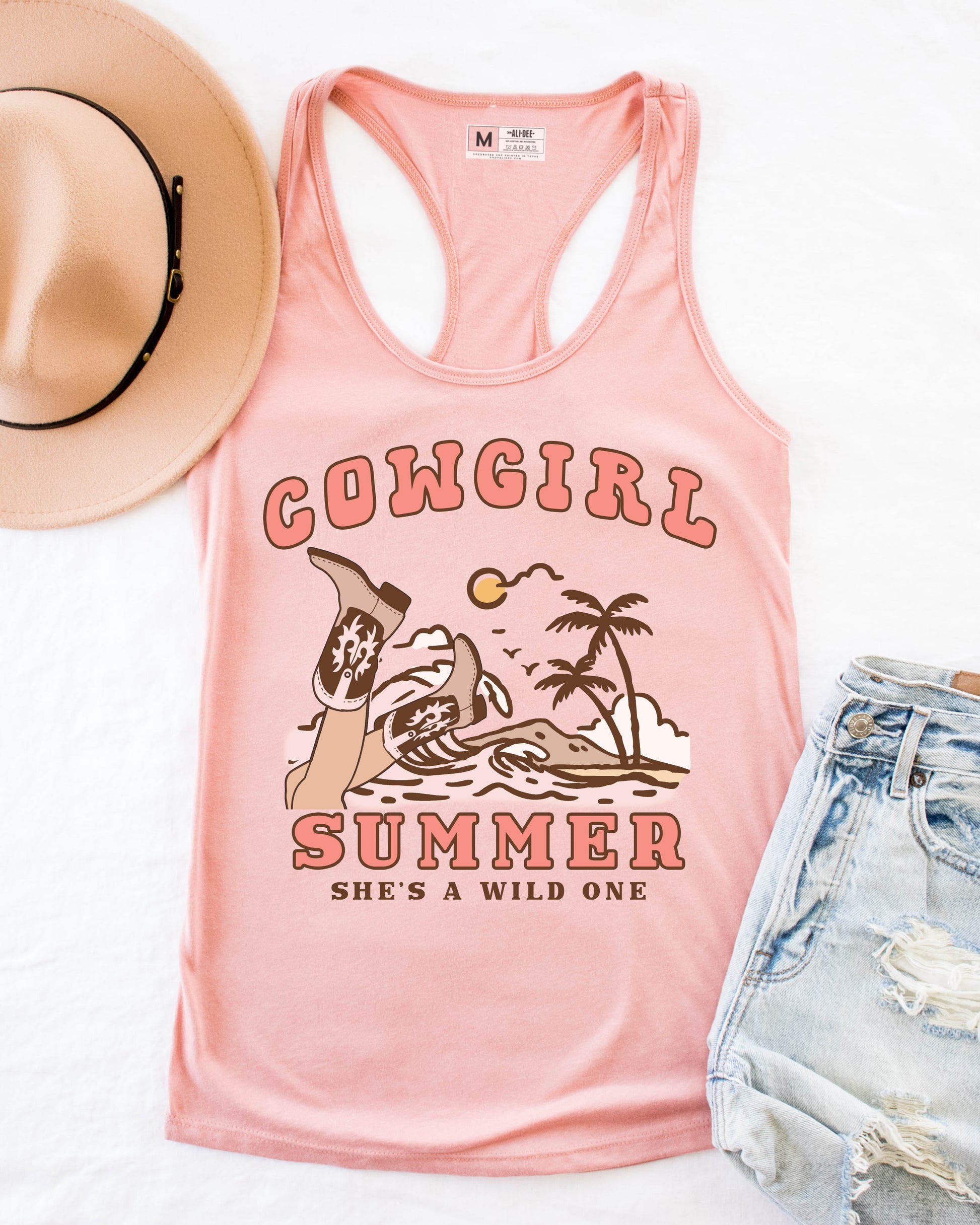 Cowgirl Summer western graphic tank by Ali Dee features features a women's fit tank in desert pink with full color art.
