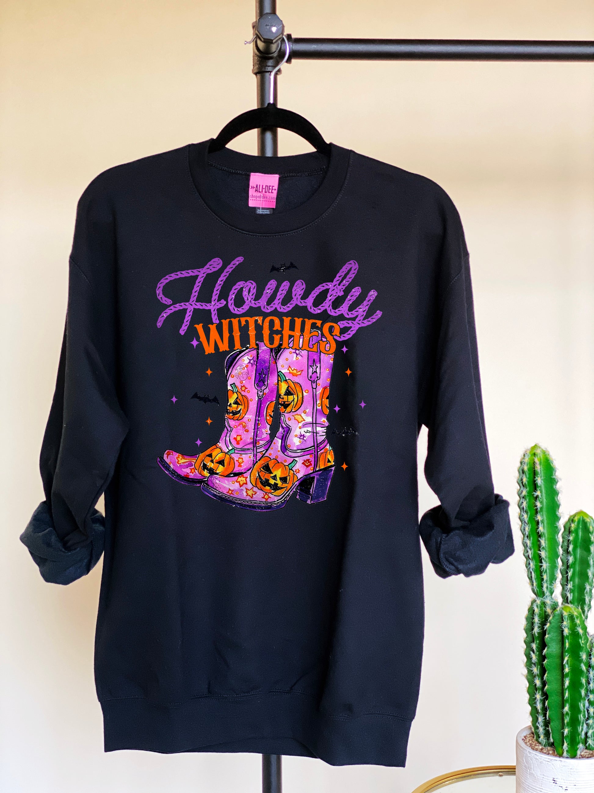 Howdy Witches Halloween Graphic Sweatshirt - Black