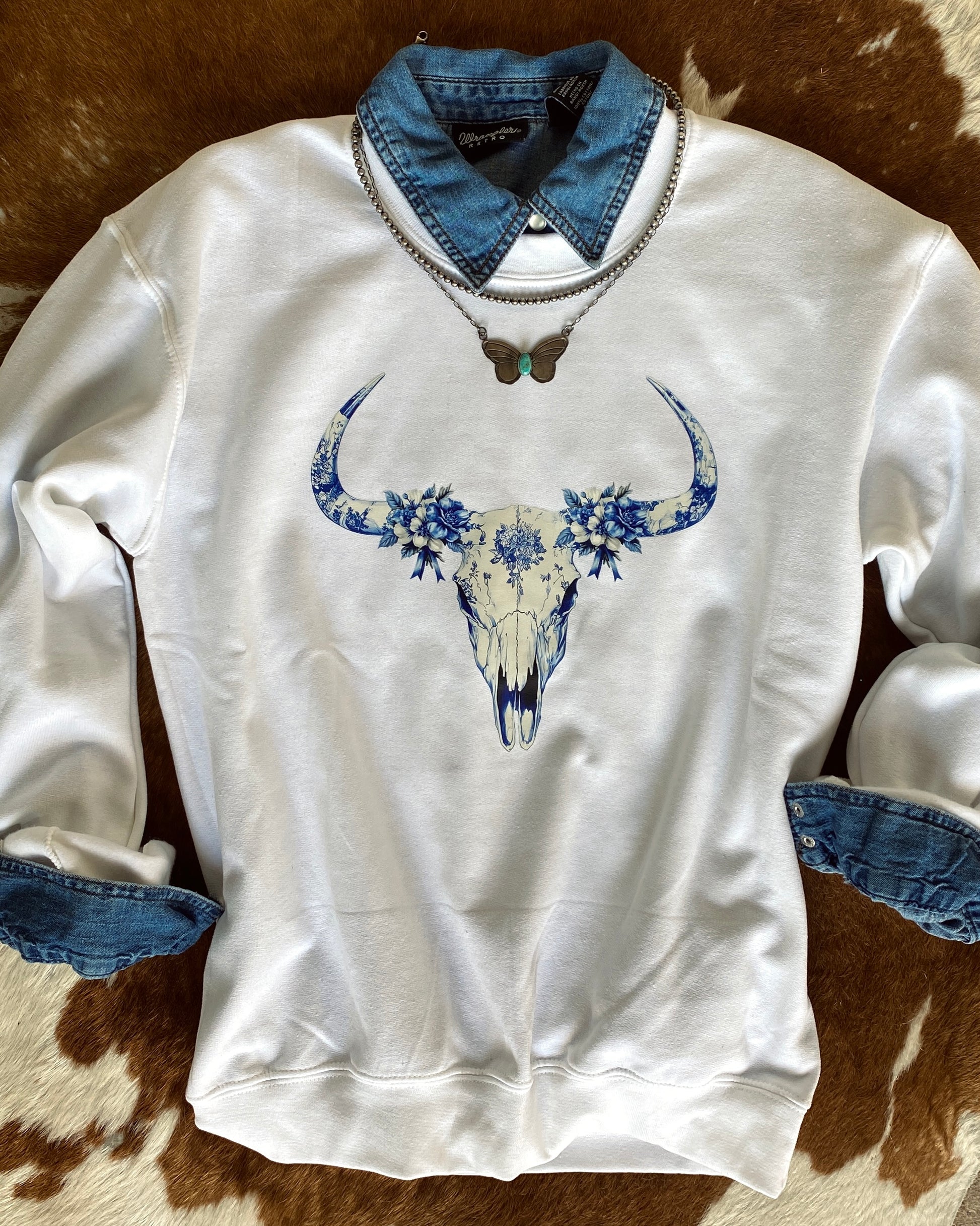 Fancy Cow Skull Graphic Sweatshirt - White
