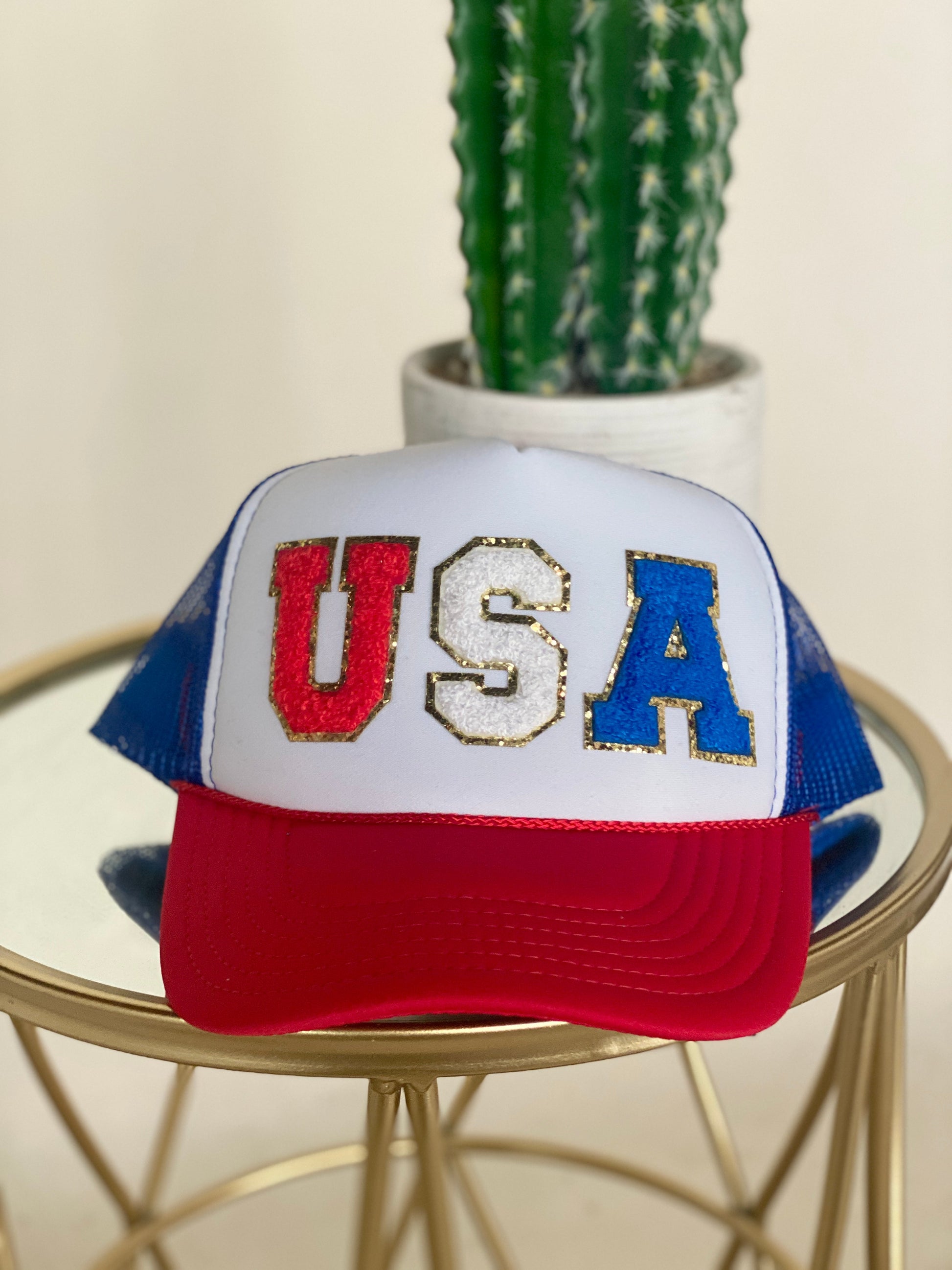 USA Chenille Letters Trucker Hat - Red White and Blue