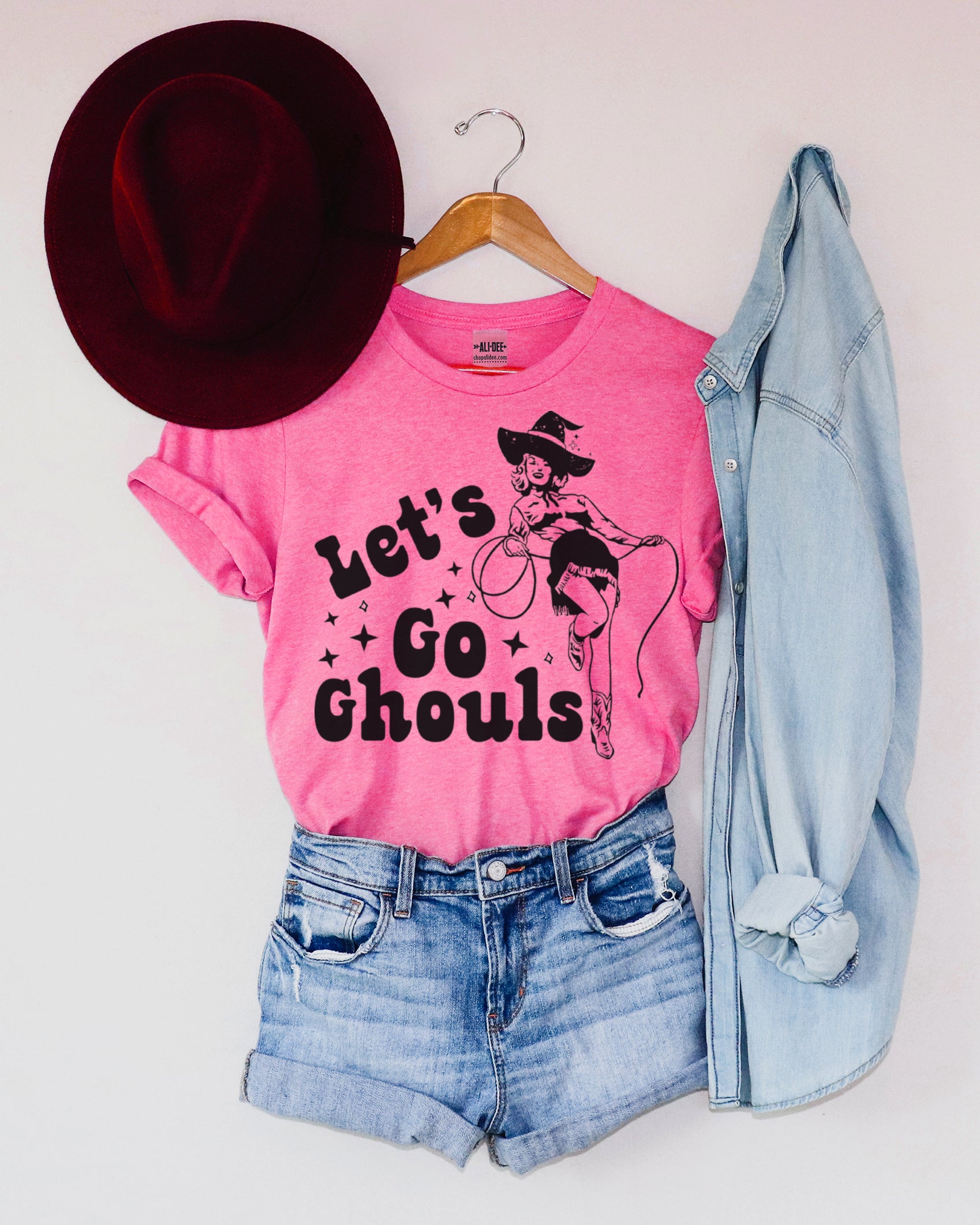 Let's Go Ghouls Halloween Graphic Tee - Heather Charity Pink